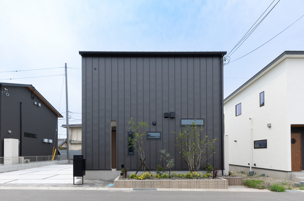 職人の手仕事による柔らかな表情と深みのある風合いが、時間とともに味わいを増し、家全体に落ち着きと存在感をプラス!シンプルでありながら、美しさを感じる外観です。