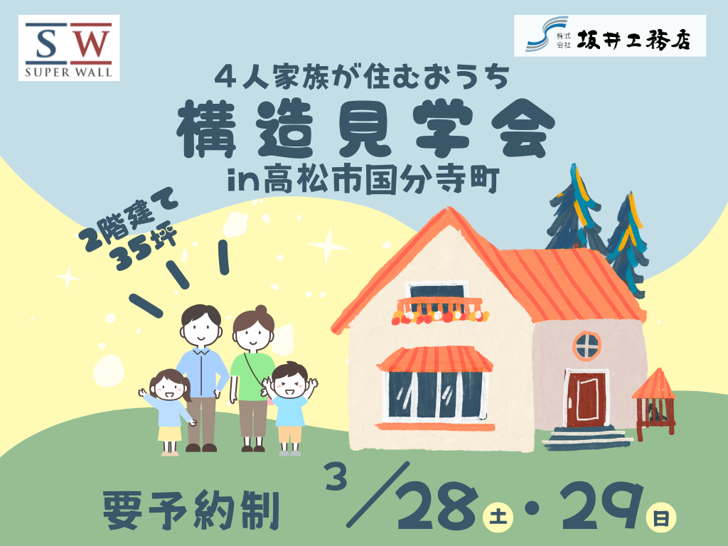 | タイトル | 【高松市国分寺町】4人家族が住む2階建て35坪の構造見学会 |
