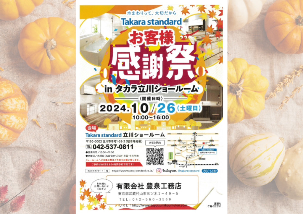 【立川】お客様感謝祭!㏌タカラ立川ショールーム(予約制)