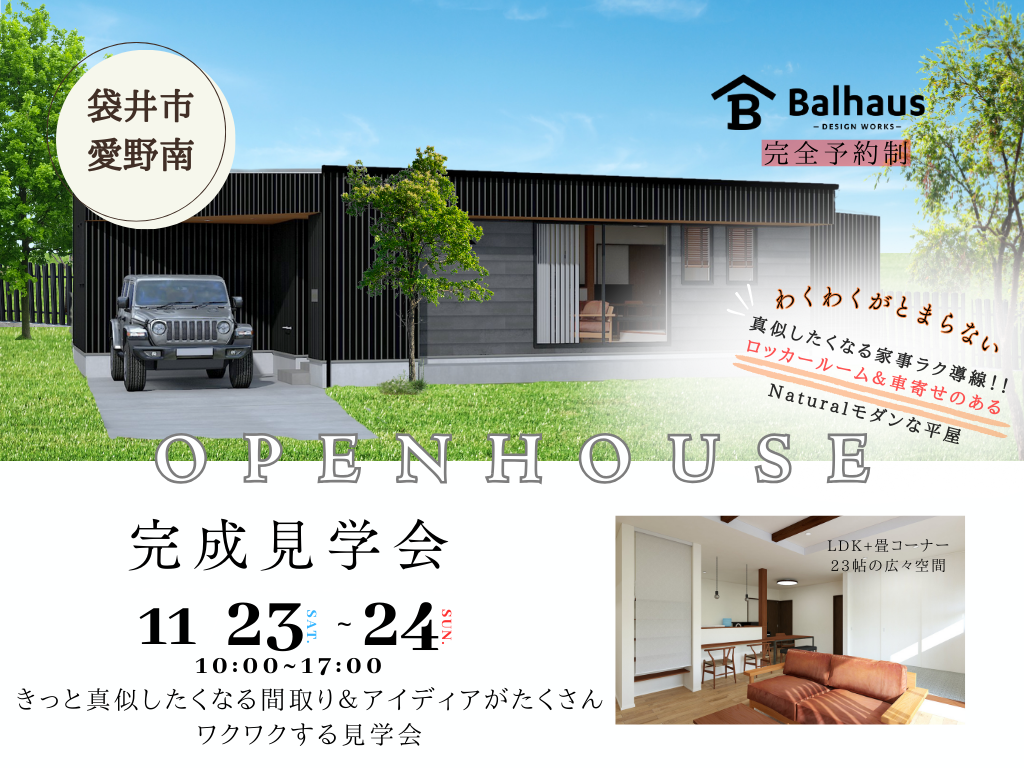 11月23日(土)・24日(日)の2日間、袋井市愛野南にて完全予約制の完成現場見学会を開催いたします