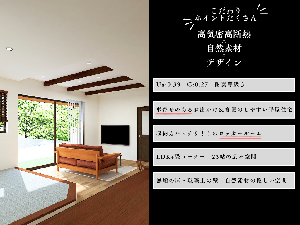 また、ポイント以外にもこの見学会では、小上がりの畳コーナーとLDKを合わせて23帖の広々とした空間も体感していただけます。