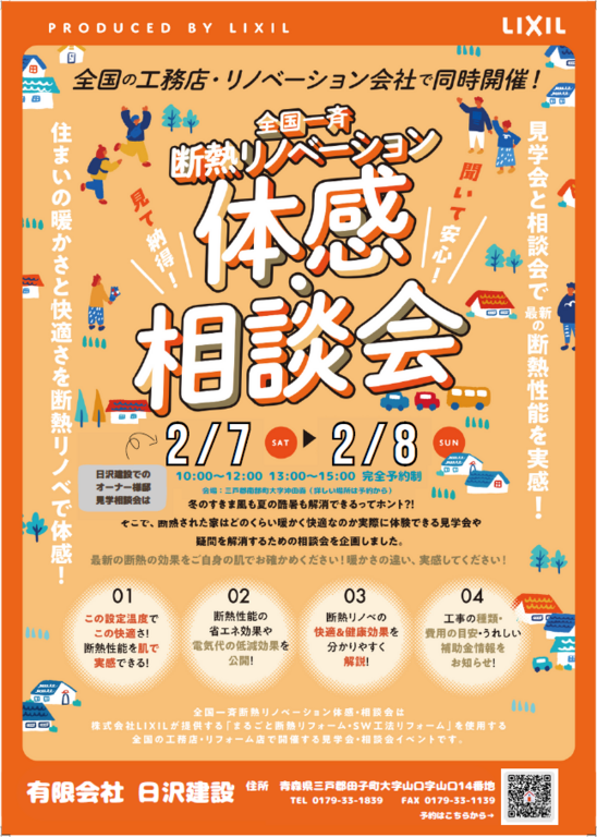 | タイトル | 【(有)日沢建設オーナー様邸見学】全国一斉断熱リノベーション体感・相談会 |