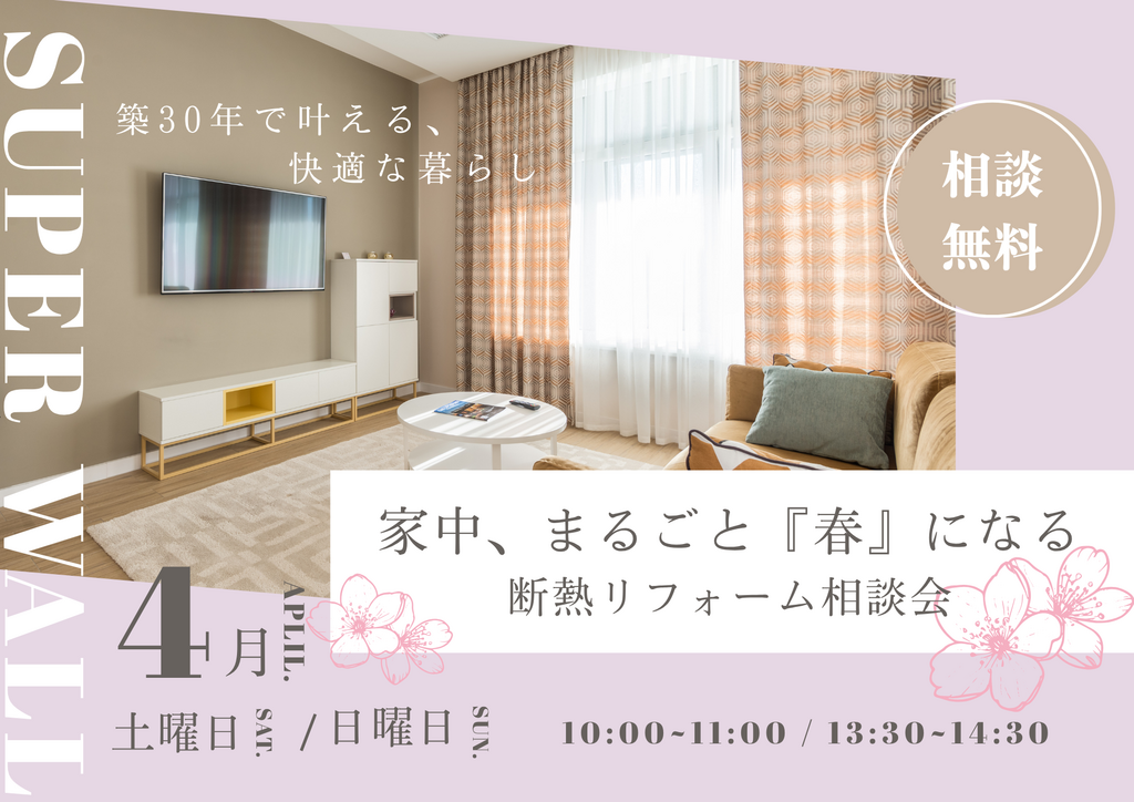 | タイトル | 築30年、家中まるごと『春』になる!断熱リフォーム相談会 |