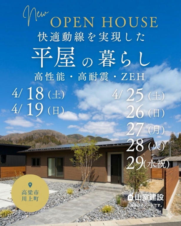 | タイトル | 平屋高性能ZEH住宅・完成見学会 |
