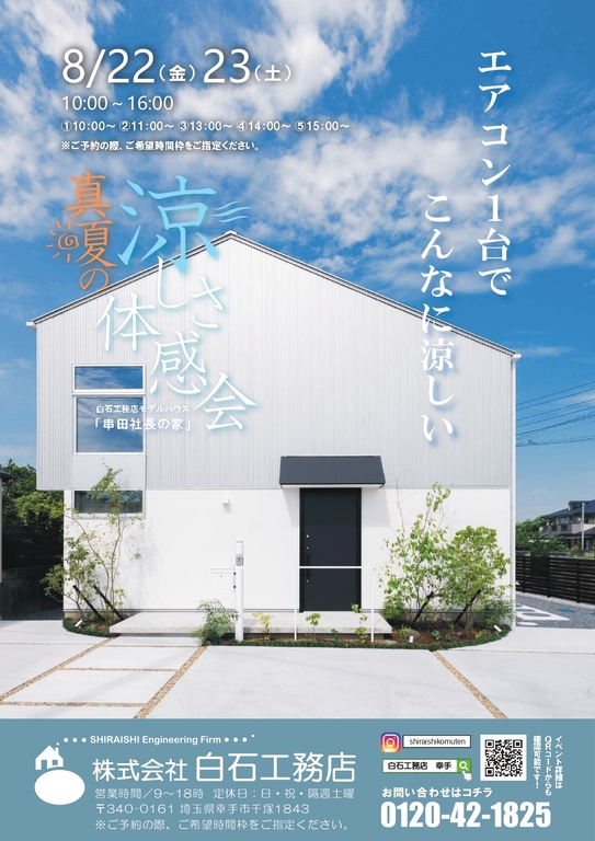 8/22(金)23(土)モデルハウス【真夏の涼しさ体感会】