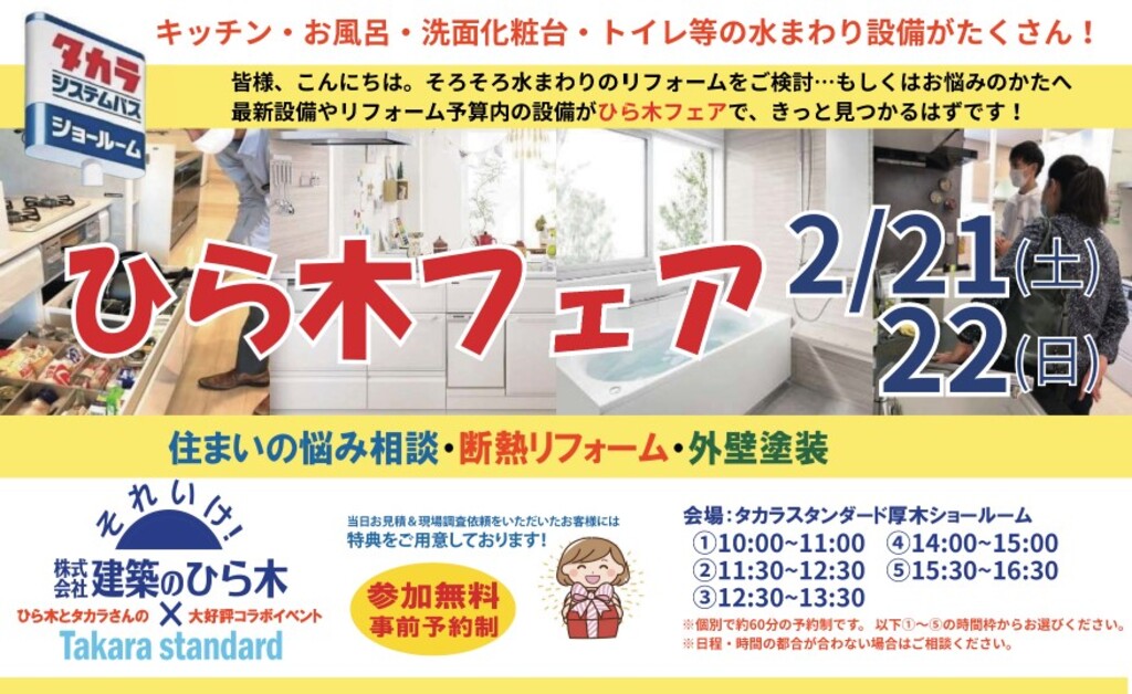 「ひら木フェア」水まわりリフォーム相談会を開催いたします。