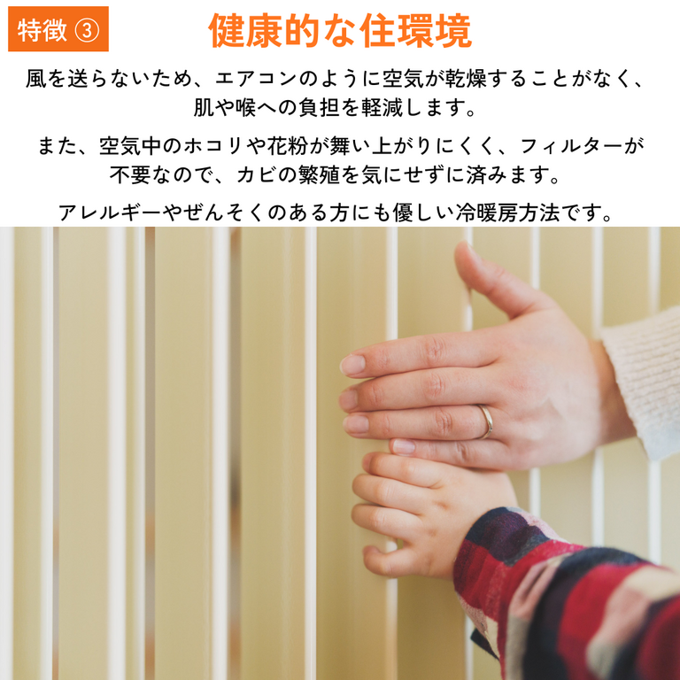 風・音・ニオイのない冷暖房システムで、