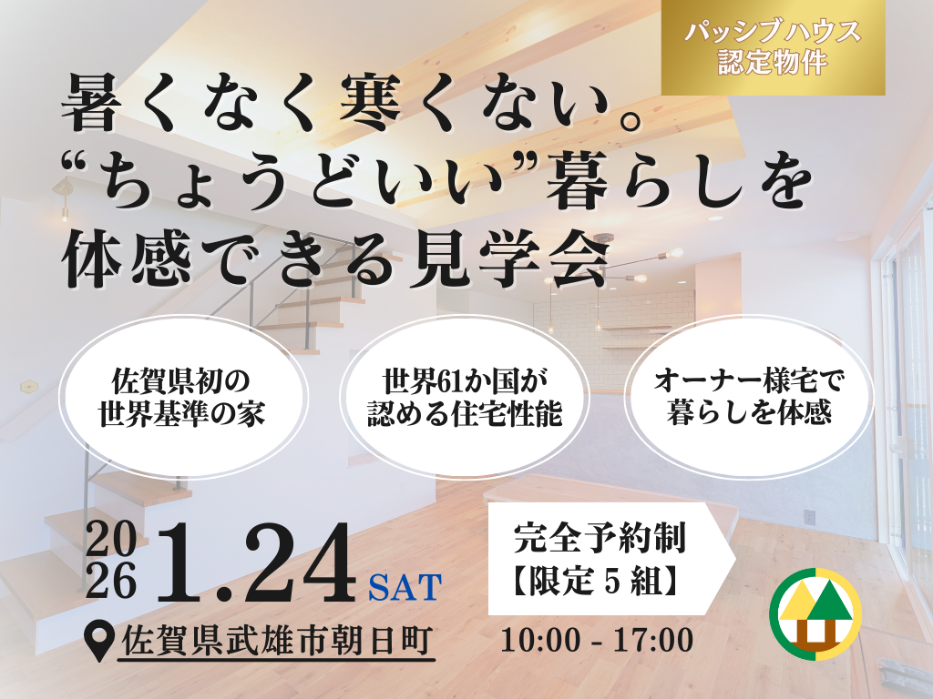 | タイトル | 【佐賀県武雄市朝日町】 佐賀県で唯一パッシブハウス申請予定の家を体感できる オーナー様宅見学会 |