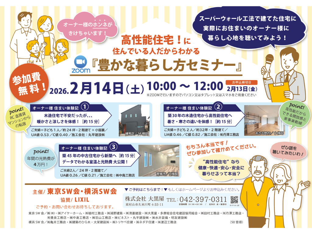 | タイトル | オーナー様の生の声が聴ける!豊かな暮らし方セミナー ZOOM開催 |