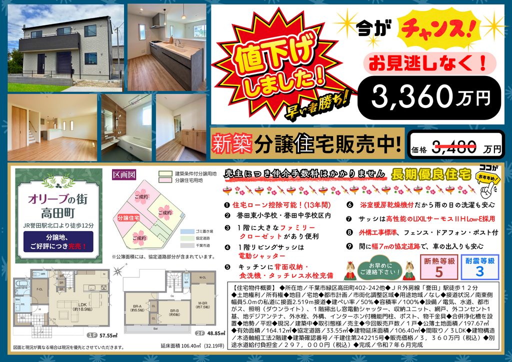 | タイトル | 【値下げしました!】千葉市緑区高田町 新築分譲住宅 販売中! |
