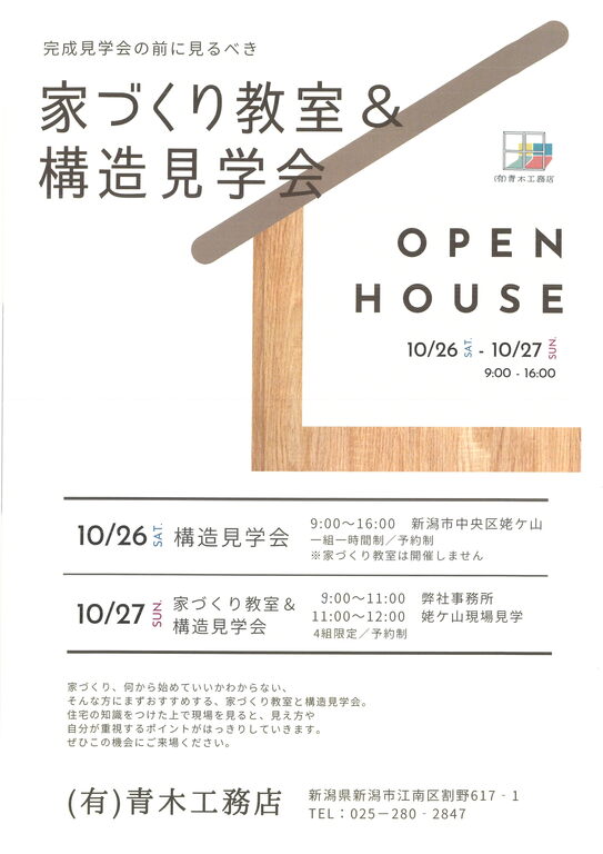 | タイトル | 新潟市 家造り勉強会+構造見学会 |