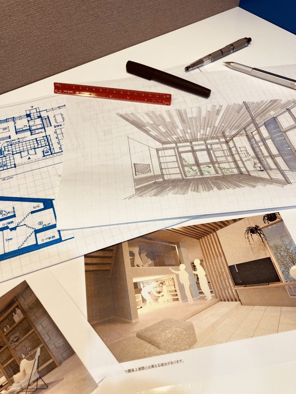 お客様の理想の暮らしのイメージをお教え頂きながら、事例をご覧頂いたり、手描きの間取りをお見せしたりしながら、イメージを固めるお手伝いをいたします。