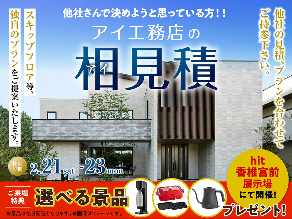 | タイトル | hit香椎宮前展示場 アイ工務店のアイ見積りキャンペーン |