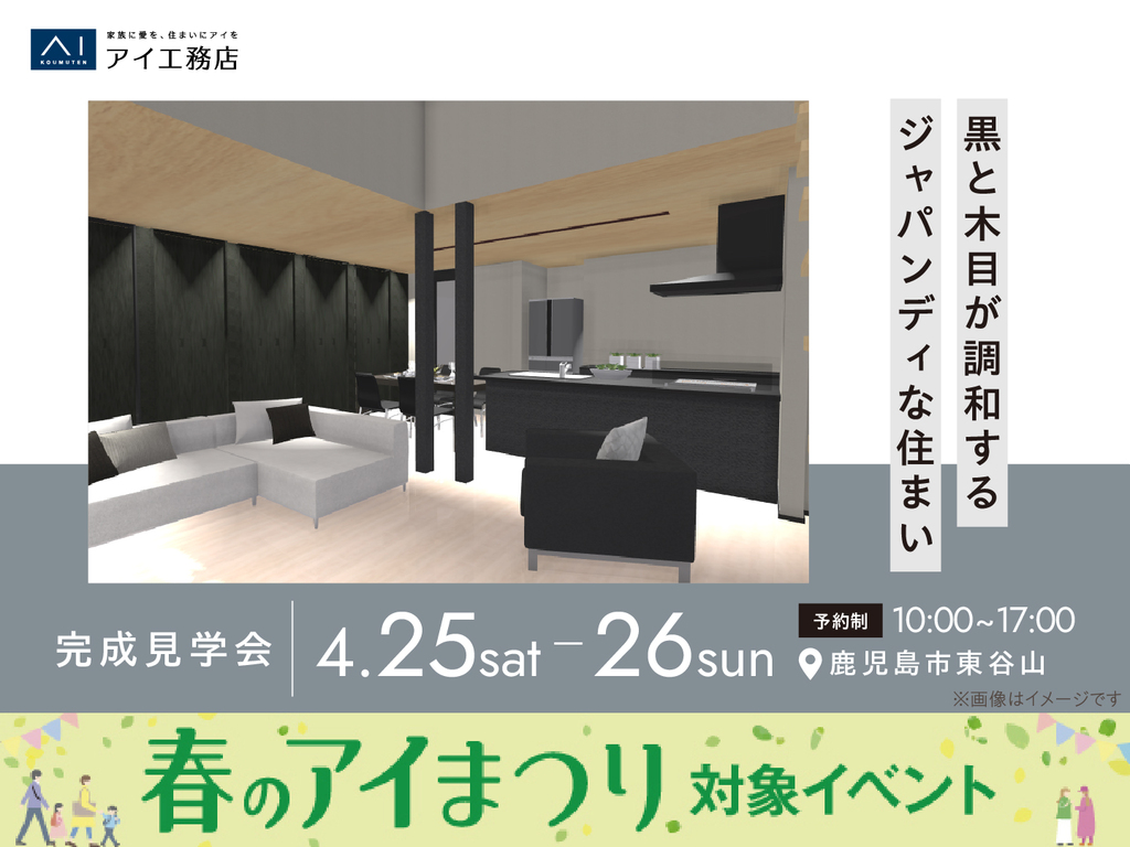 | タイトル | 鹿児島展示場 《鹿児島市東谷山》黒と木目が調和する ジャパンディな住まい 完成見学会 |