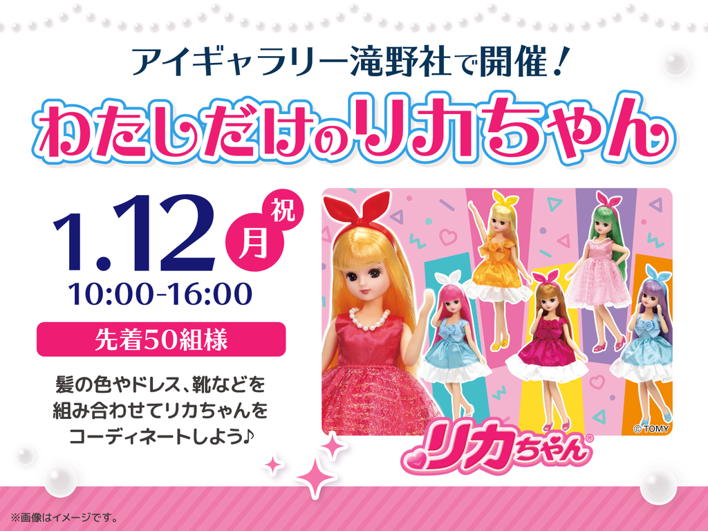 | タイトル | アイギャラリー滝野社(ショールーム併設型住宅展示場) コーディネートしよう♡わたしだけのリカちゃん |