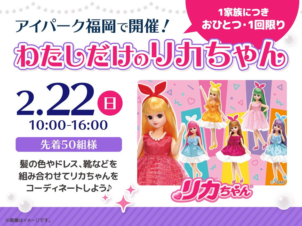 | タイトル | アイパーク福岡(複合型住宅展示場) コーディネートしよう♡わたしだけのリカちゃん |