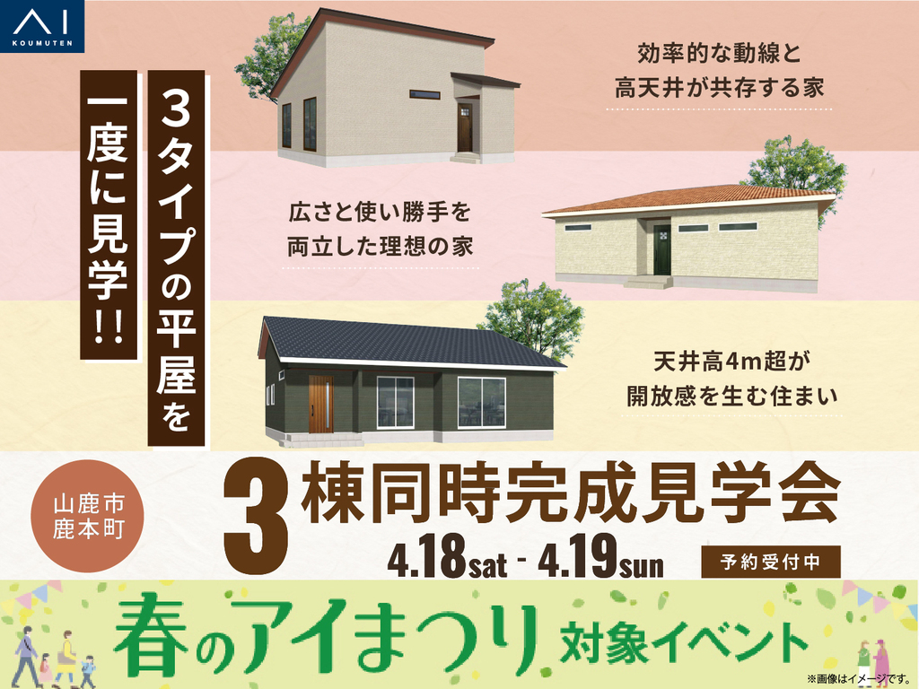 タイトル 御代志展示場 《山鹿市鹿本町》平屋!3棟同時完成見学会