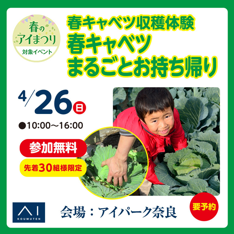 | タイトル | アイパーク奈良 春キャベツ収穫体験 |