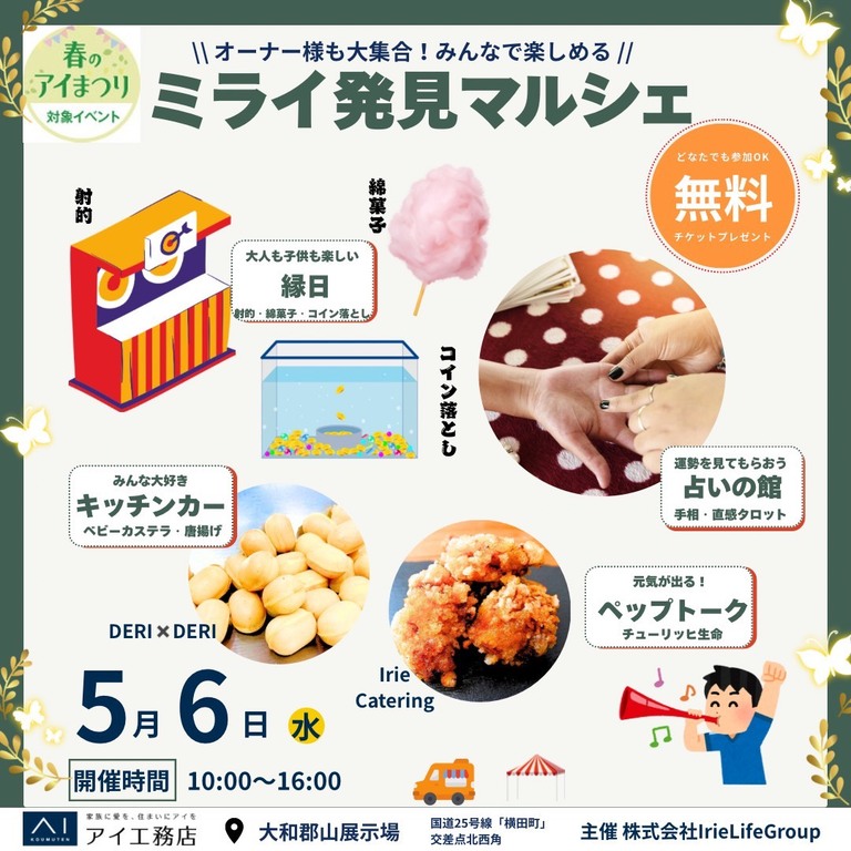 5月6日(水・振休)は、アイ工務店 大和郡山展示場で
