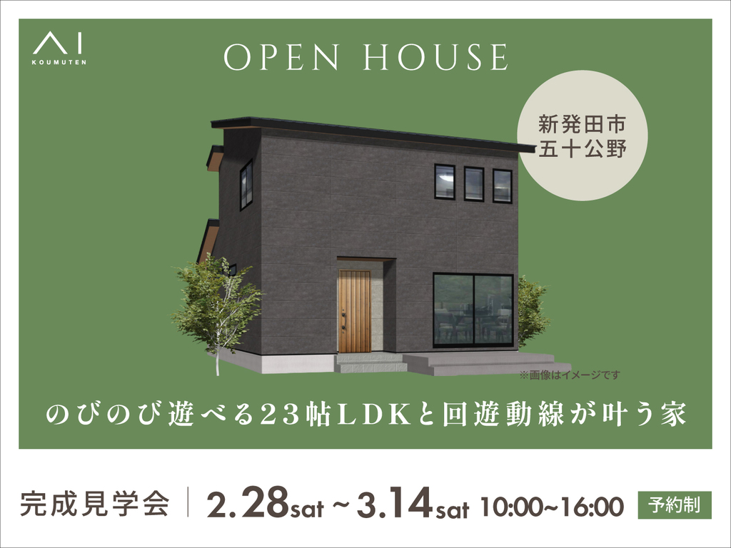 | タイトル | 新潟南展示場 《新発田市五十公野》のびのび遊べる23帖LDKと 回遊動線が叶う家 完成見学会 |