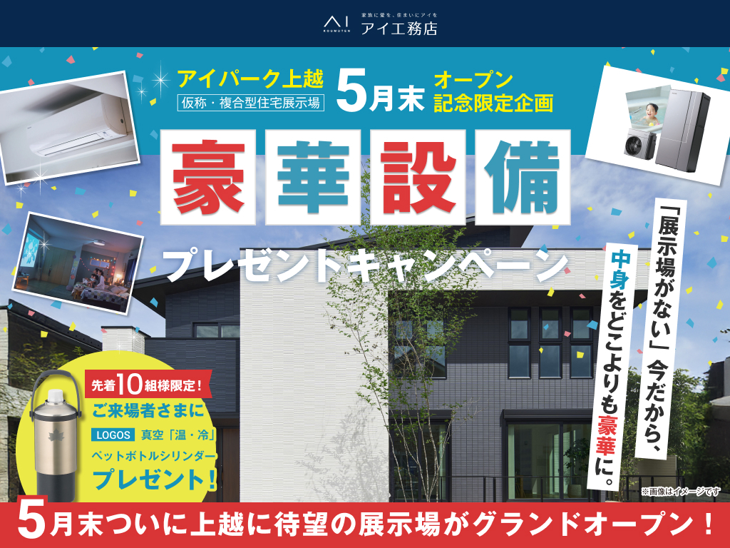 | タイトル | 上越事務所 【展示場OPEN前の今だけ!】豪華設備プレゼントキャンペーン |