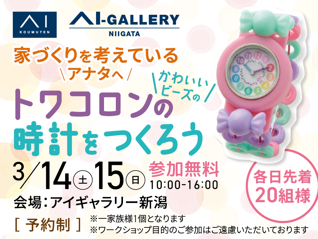 | タイトル | アイギャラリー新潟 トワコロン時計をつくろう🍀 |
