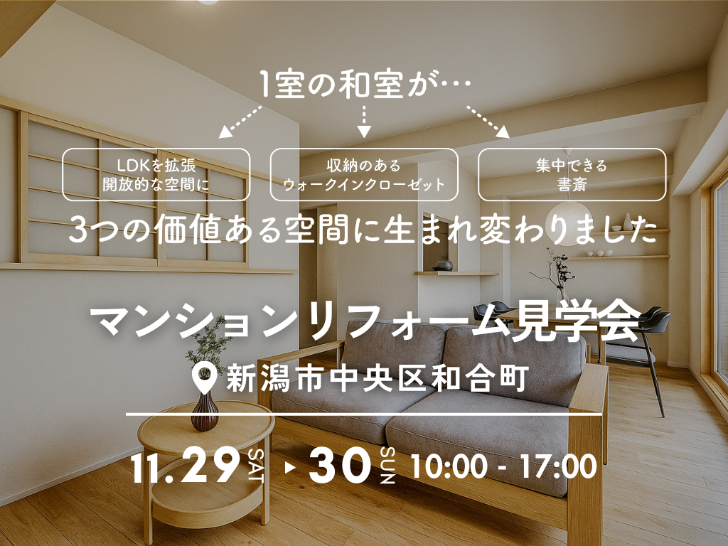 | タイトル | "仕切りをなくして、ひとつながりの広々LDKへ"築25年マンションリフォーム見学会 |