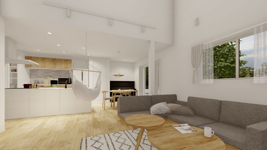 ナチュラルな内装コーディネートの解放感あるLDK