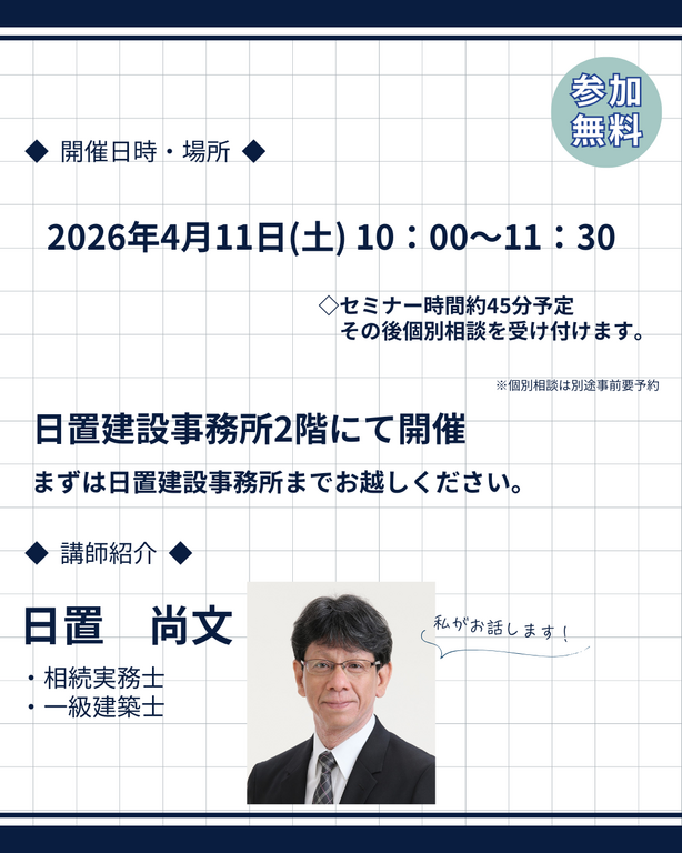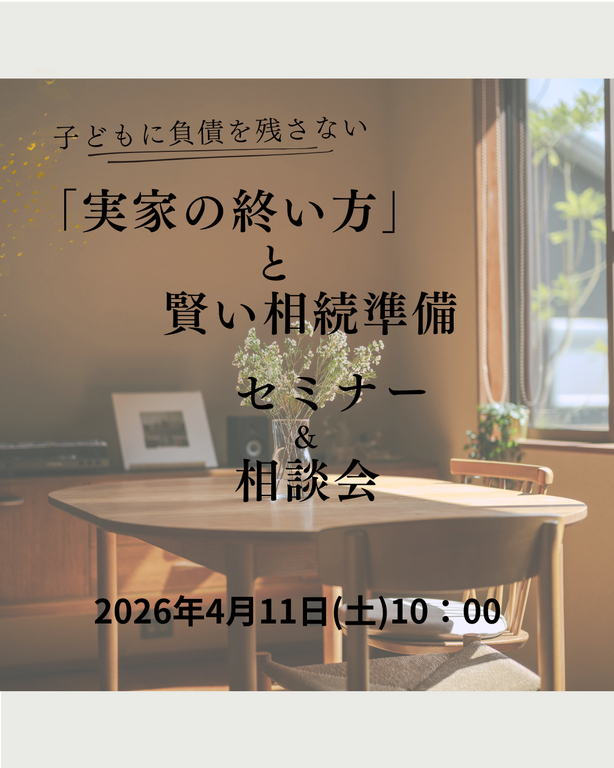 | タイトル | 兵庫県明石市/子どもに負債を残さない!「実家の終い方」と賢い相続準備 セミナー&相談会 |