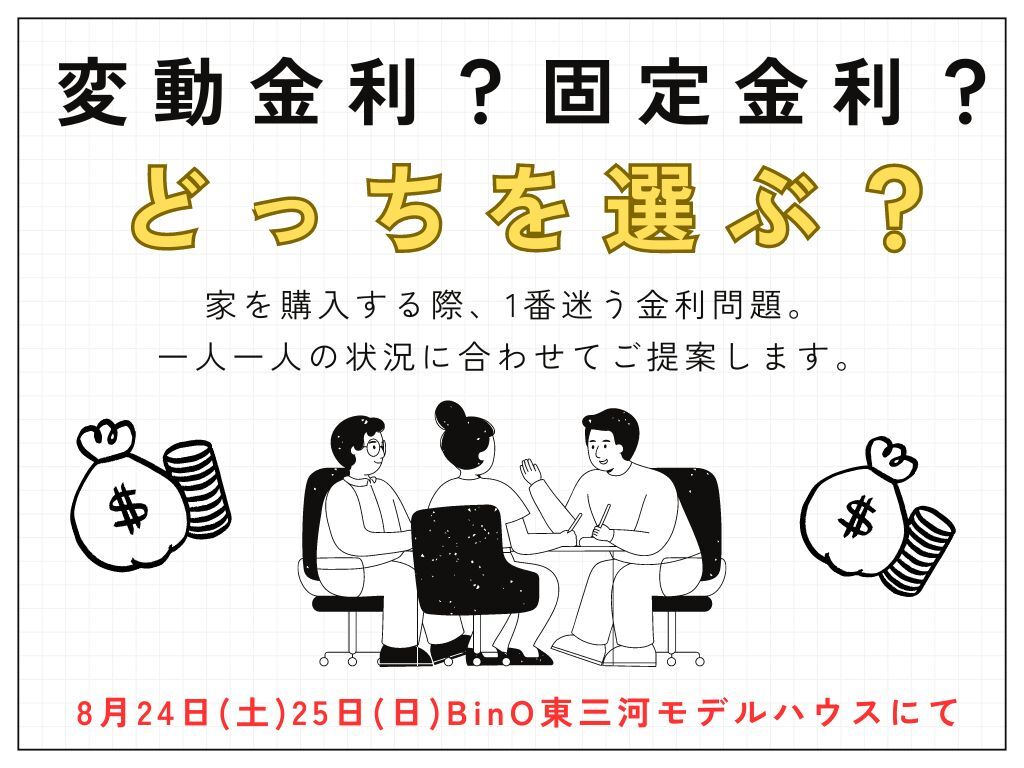 | タイトル | 住宅ローン勉強会 変動金利?固定金利?どっちを選ぶ?◇8月24日(土)25日(日)開催 |