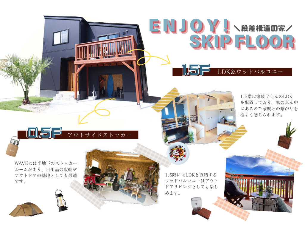 家の中心1.5階に配置されたLDK、光あふれるウッドバルコニー、趣味を楽しむアウトサイドストッカーなど他にはない特徴がいっぱいです!