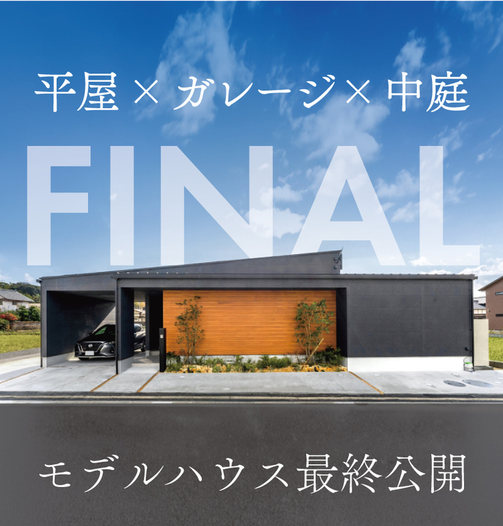 【まもなく公開終了!】平屋×ガレージ×中庭のあるモデルハウス in 直方市