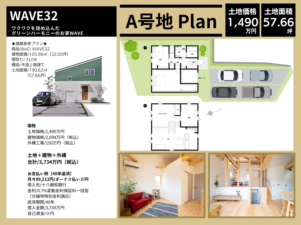 ・A号地:1,490万円 190.62㎡ / 57.66坪