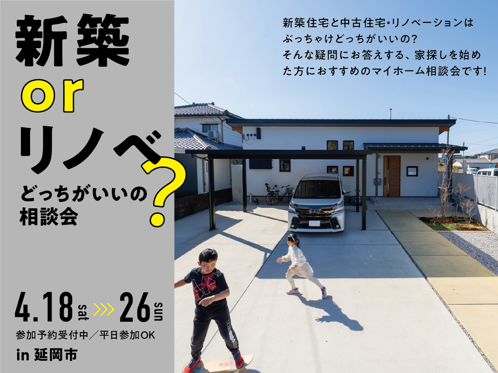 2026年4月18日〜26日の期間中、「新築 or リノベ どっちがいいの」相談会 in 延岡を開催します!!
