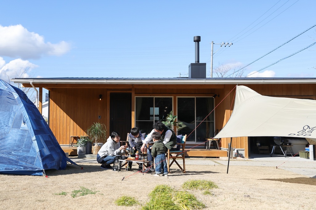 BinOで最もシンプルな平屋です。家の原点を見つめ直して本当の豊かさを追求しました。内と外をフラットに結ぶ開放的な空間で自然に寄り添いながら心地よくくらせます。コンパクトでムダのない間取りは家族同士をつなぎ、心豊かな日常をもたらします。小さくても可能性は無限大です。