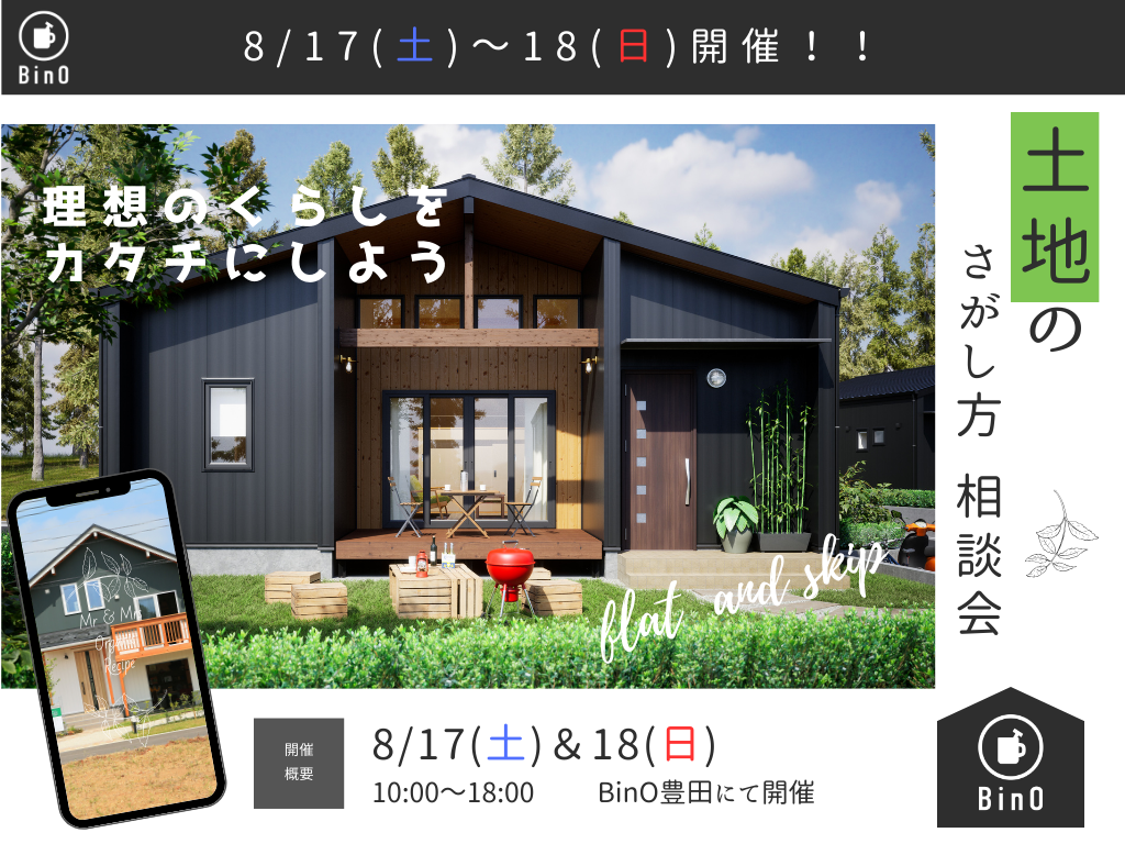 | タイトル | 【8/17(土)~18(日)】土地のさがし方相談会【BinO豊田】 |