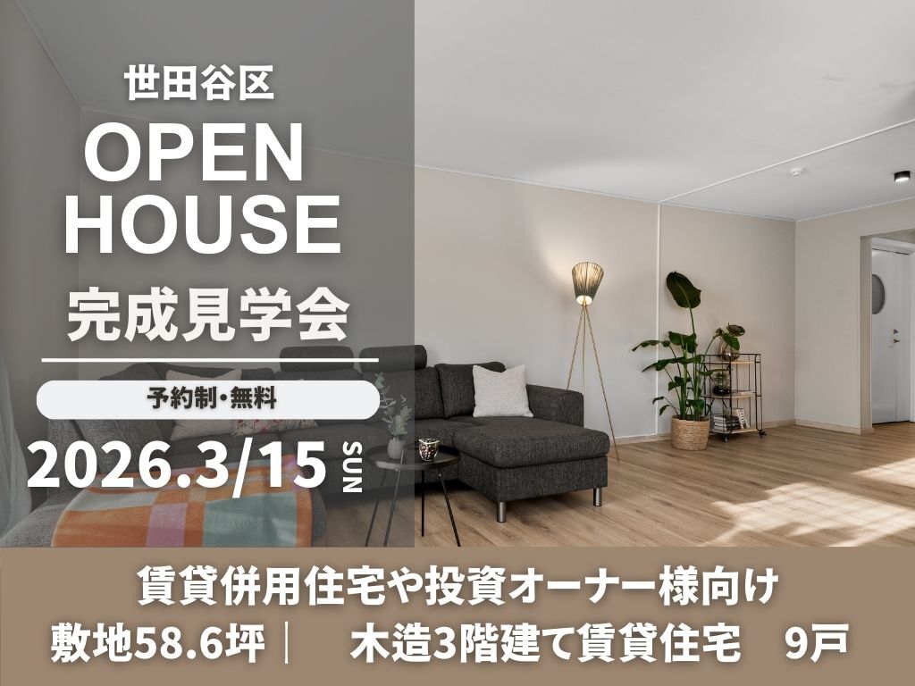 タイトル 【世田谷区】敷地約59坪 木造3階建て集合住宅9戸 完成見学会
