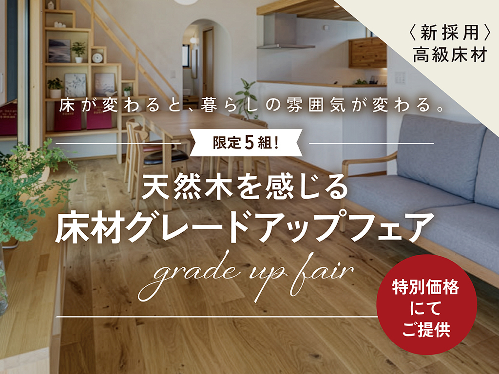 | タイトル | 限定5組!天然木を感じる床材グレードアップフェア |