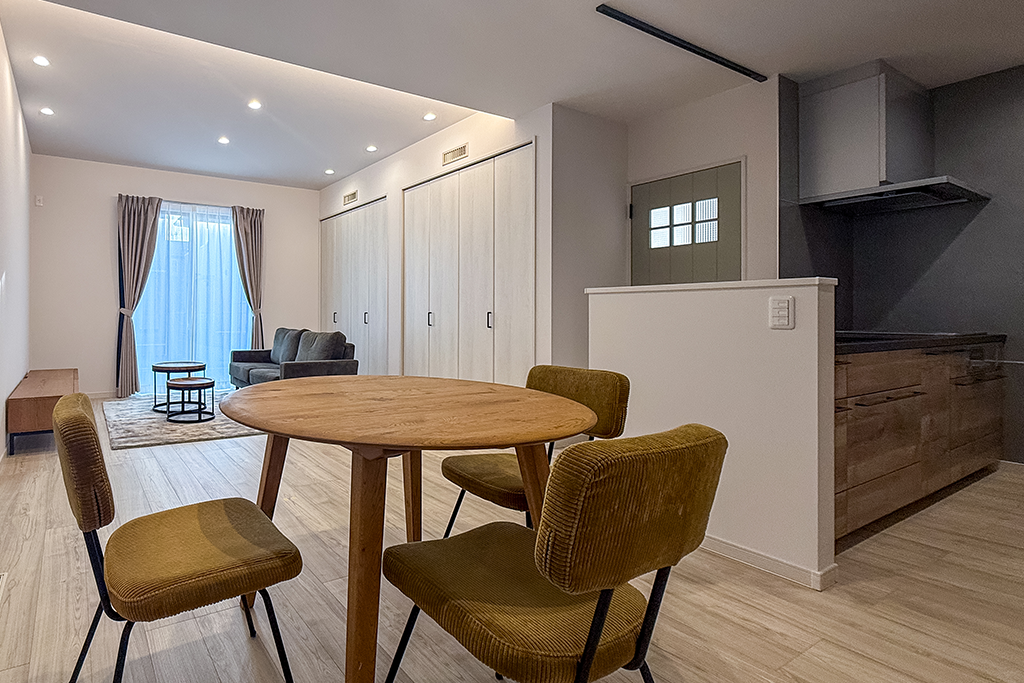 キッチンからLDKや庭まで見渡せる設計で、子育て中のご家族にも安心。