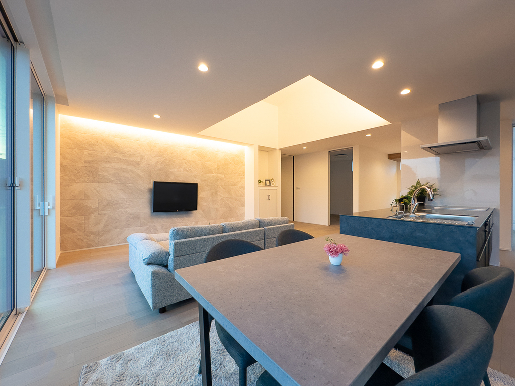 勾配天井が演出するホテルライクな大空間LDK