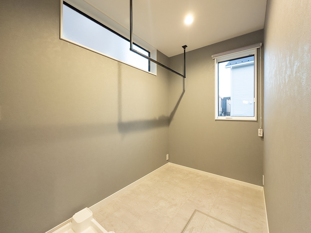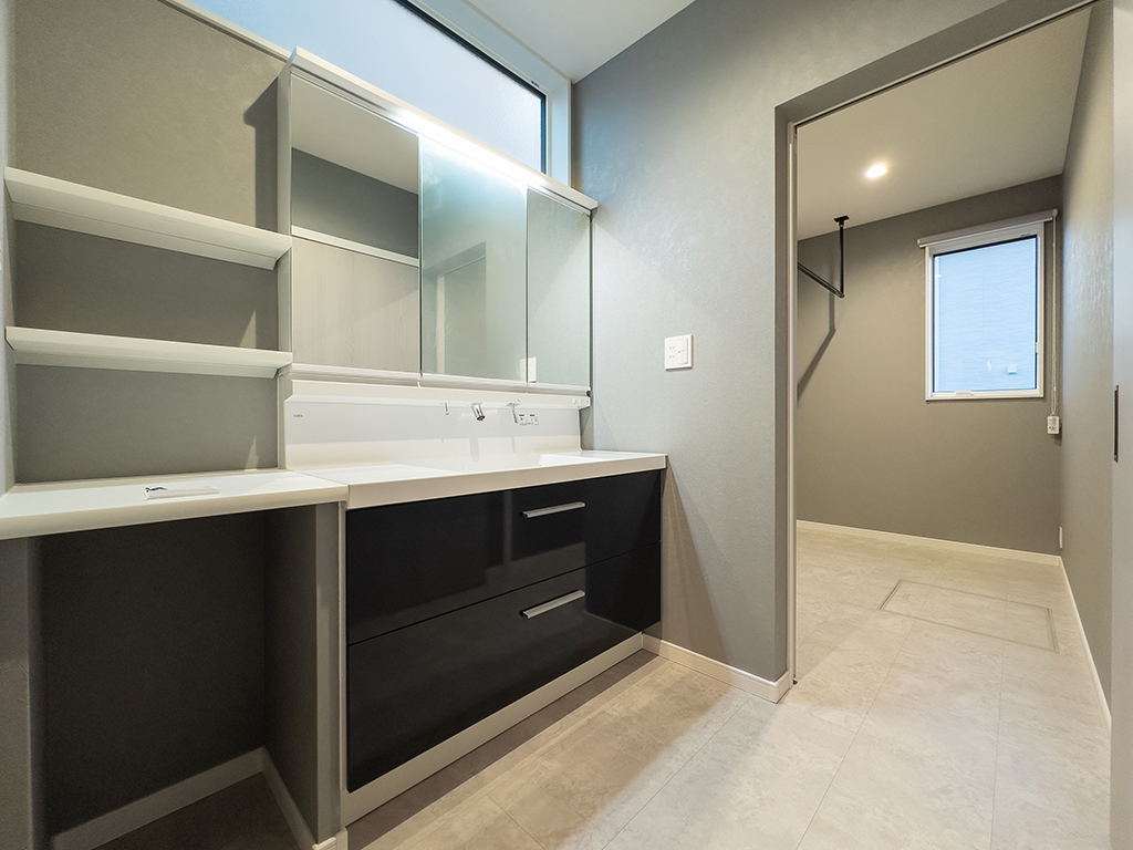 浴室・洗面脱衣所・ランドリールームを一直線に配置したことで、一連の洗濯動作の負担を最小限に抑えました。