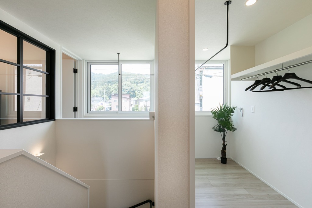 2階に水回りを集約し、サンルームを通ってリビングへとつながる回遊動線を実現。便利さはもちろん、家族が集まるリビングとの自然なつながりも大切に設計しました。どれほど快適かは、ぜひモデルハウスで体感してみてください。