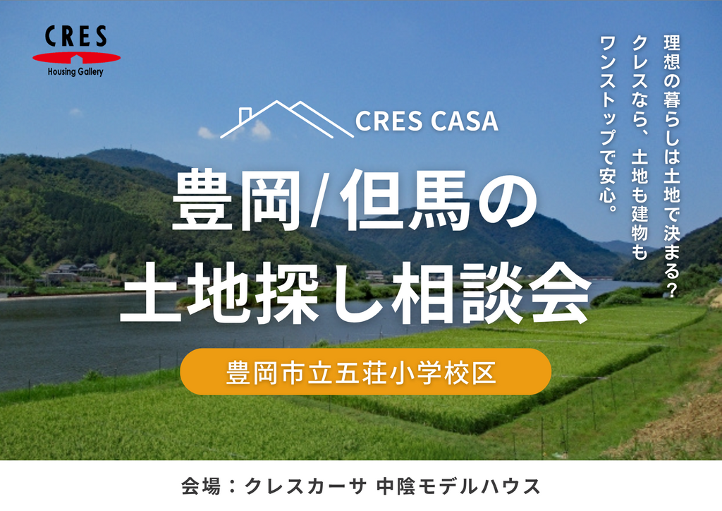「土地探し、何から始めたらいい?」とお悩みの方へ。 まずは土地探しの基本について、一緒に考えてみませんか? 不動産部(ピタットハウス豊岡店)をもつクレスなら、場所の条件だけでなく、「理想の暮らし」に相応しい土地を、プロの目線でご紹介いたします。
