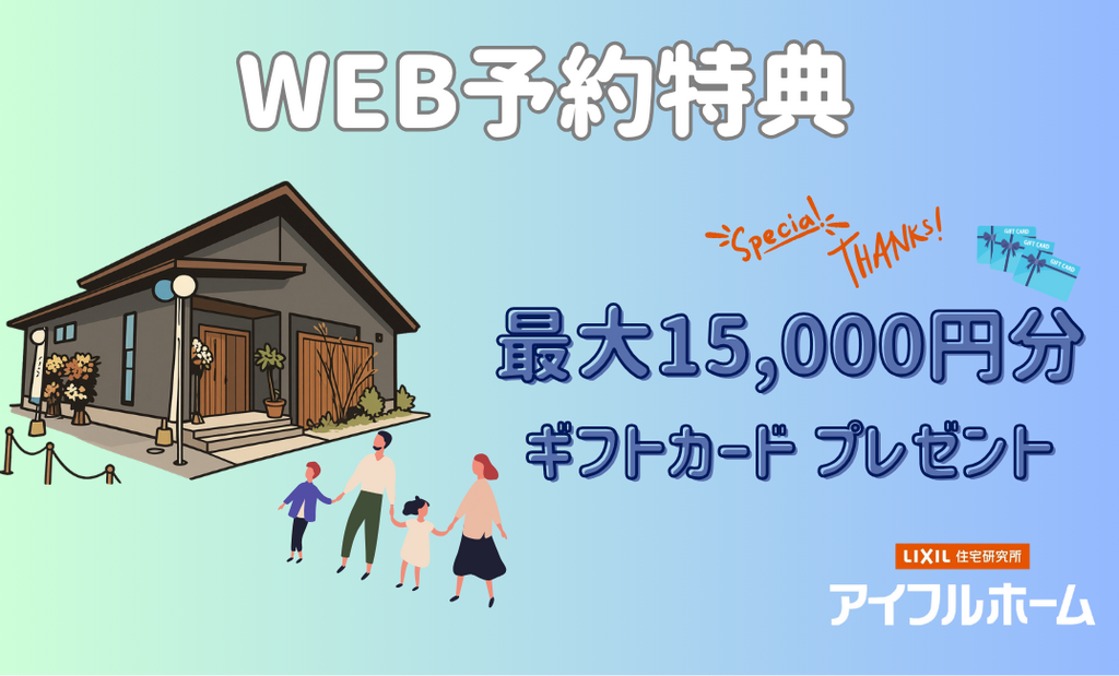 ※ 前日までWEBでのご予約でアイフルホームにはじめてご来場のご家族様1回限りとさせていただきます。
