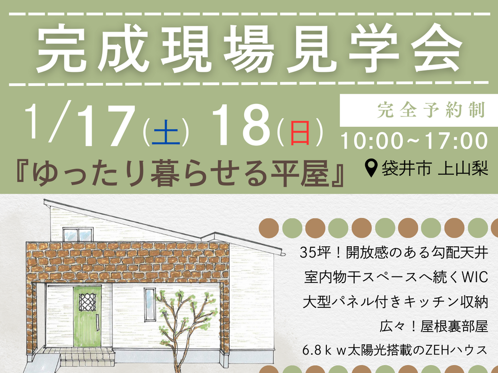 2026年1月17(土)、18(日) 袋井市上山梨にて2日間限定の現場見学会を開催します!