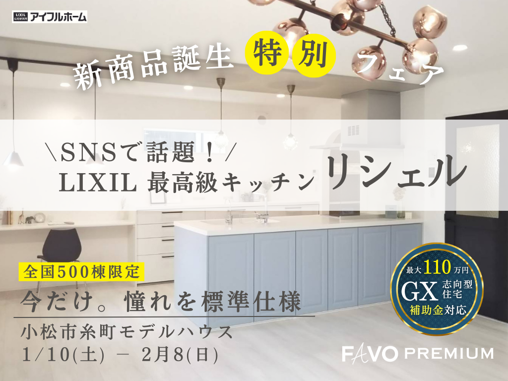 今なら全国限定500棟に限り、LIXIL最高級キッチンリシェルを「標準仕様」でご提供します。