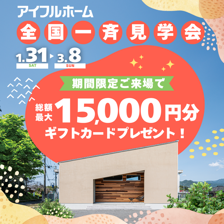 ※ 前日までWEBでのご予約でアイフルホームにはじめてご来場のご家族様1回限りとさせていただきます。