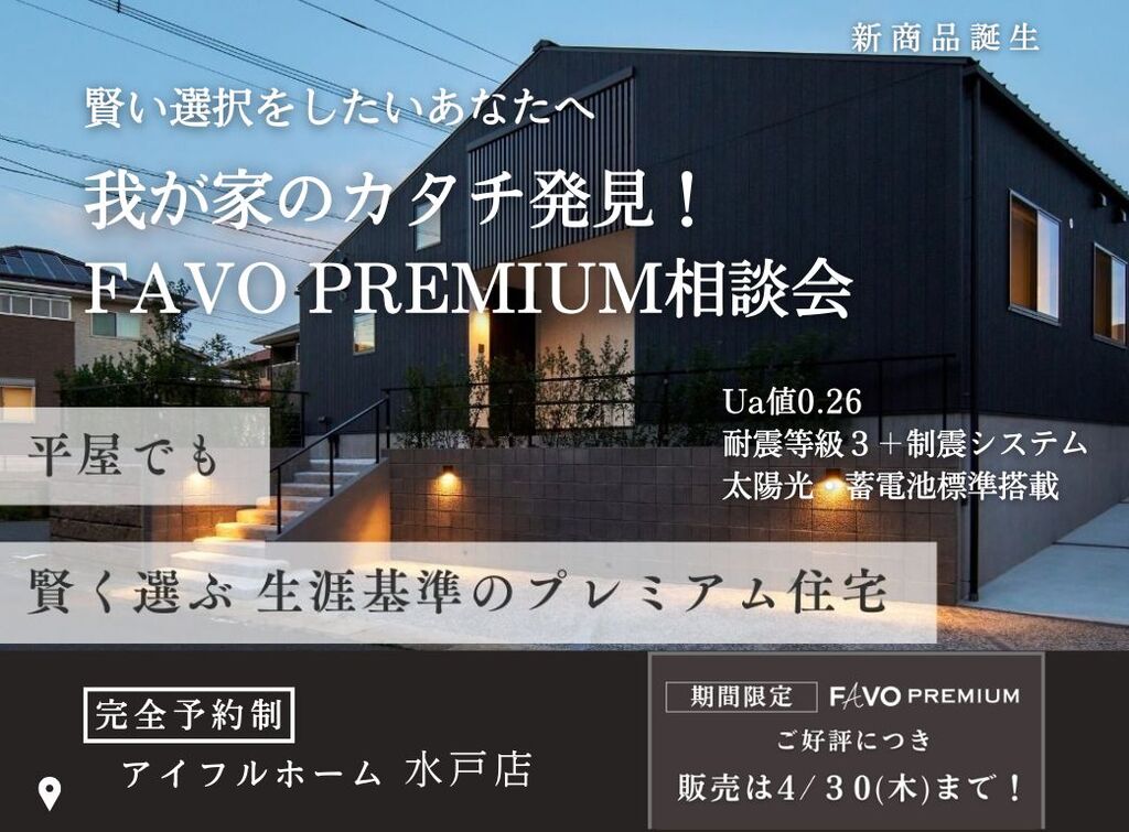 | タイトル | 【水戸店】我が家のカタチ発見! FAVO PREMIUM相談会 ※販売期間4月末まで※ |