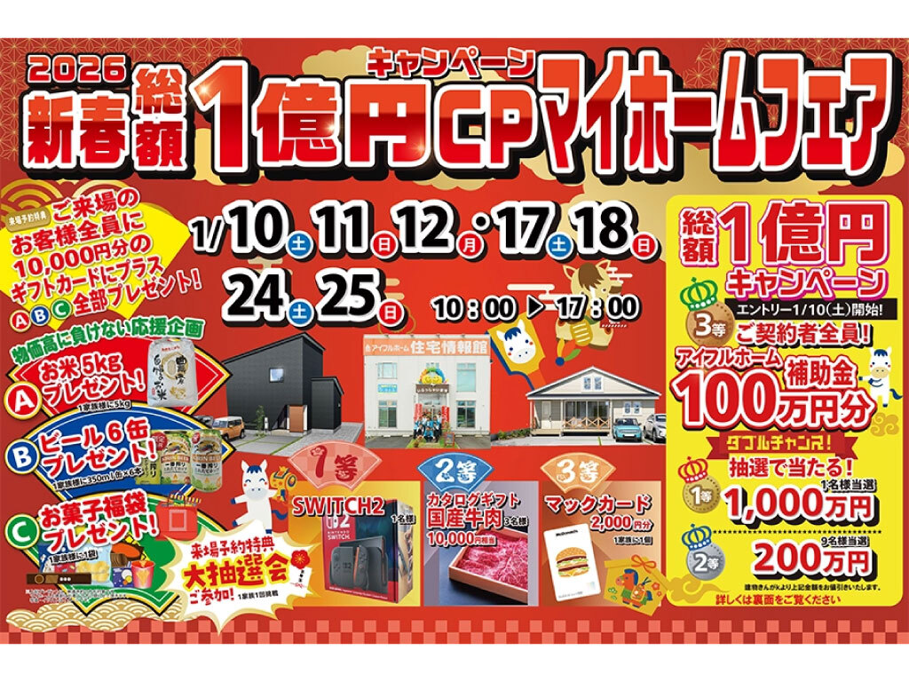 | タイトル | おかげさまで30周年!持ち家着工棟数20年連続No.1!総額1億円!新春マイホームフェア |