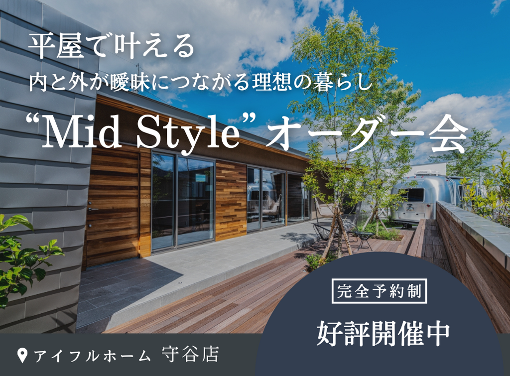 | タイトル | 【守谷店】平屋で叶える内と外が曖昧につながる理想の暮らし“Mid Style”オーダー会 |